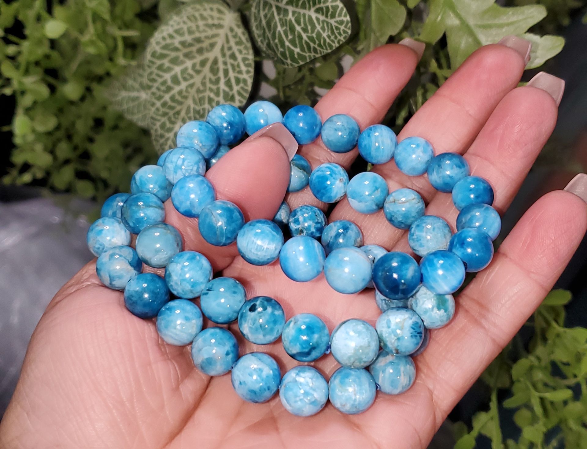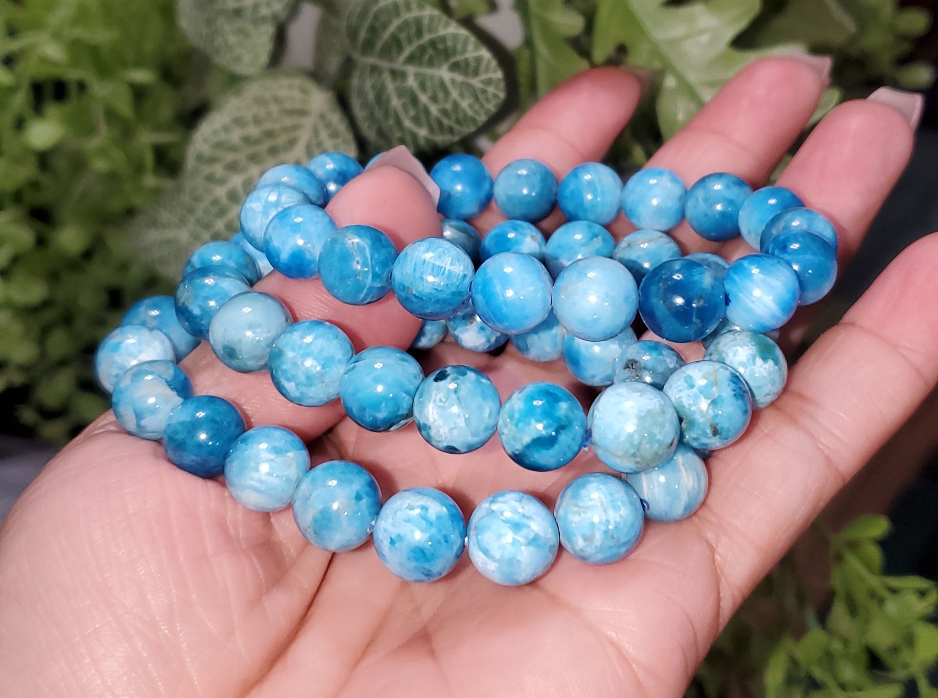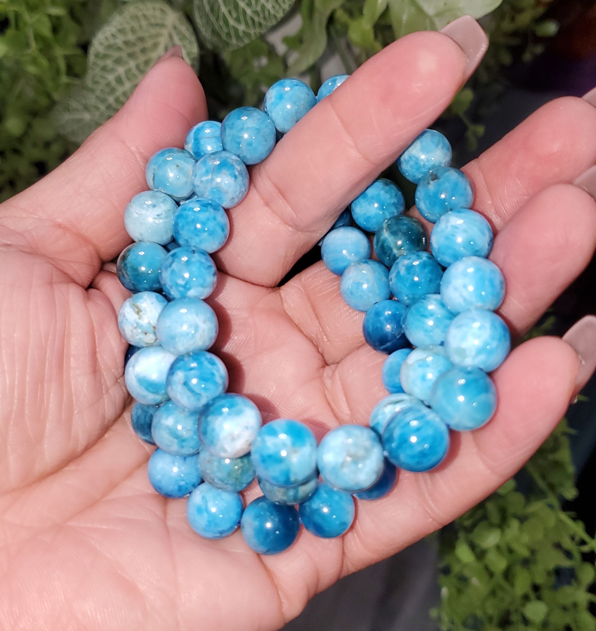 These apatite bead bracelet features smooth, polished beads in vibrant blue tones that catch the eye with their natural depth and shine. Apatite is often associated with motivation, creativity, and clear communication, making this bracelet both stylish and meaningful. Comfortable for everyday wear and easy to layer with other pieces, it’s a versatile accessory that adds a pop of color while symbolizing inspiration and personal growth. Perfect as a thoughtful gift or a unique addition to any jewelry collection.