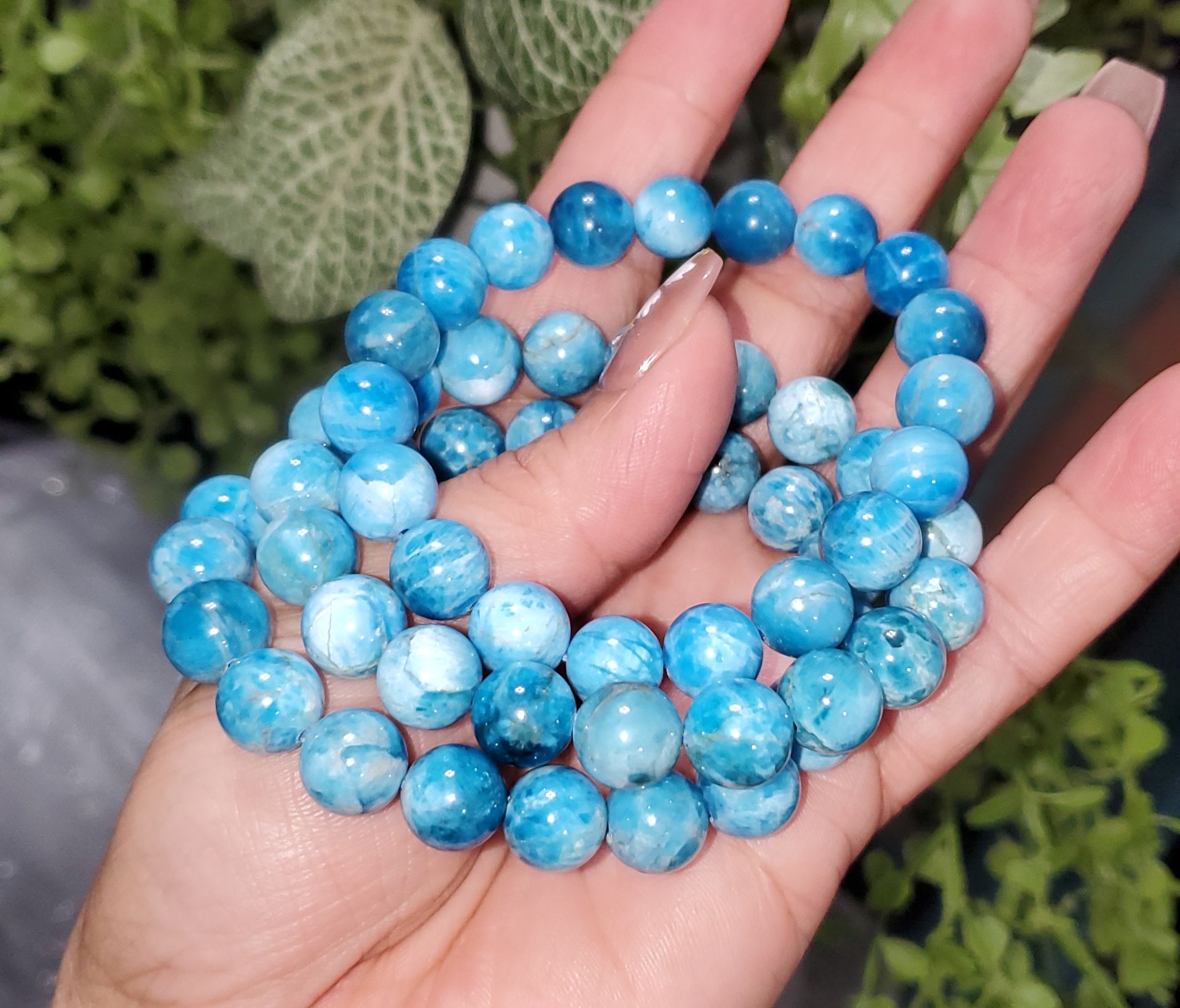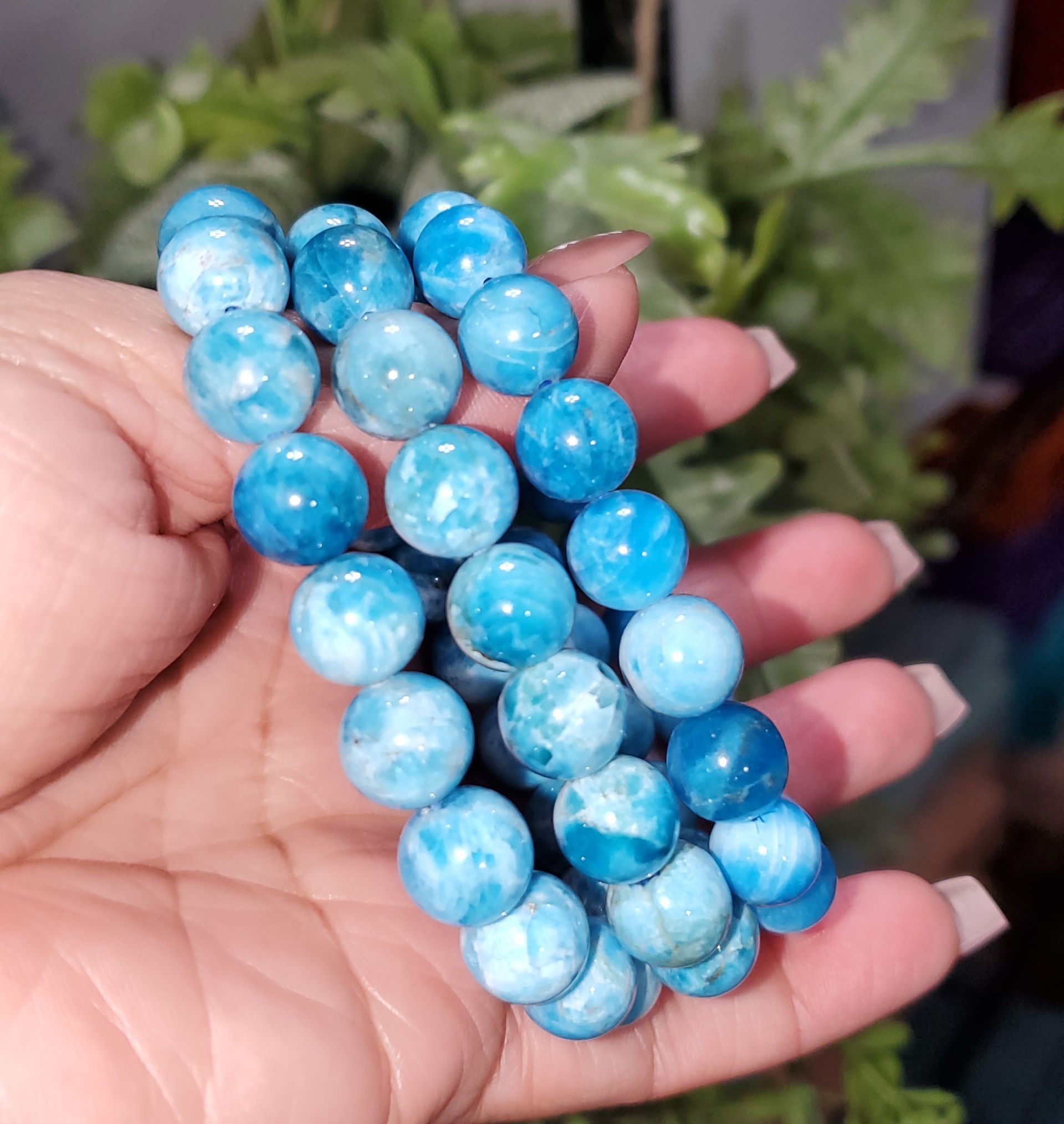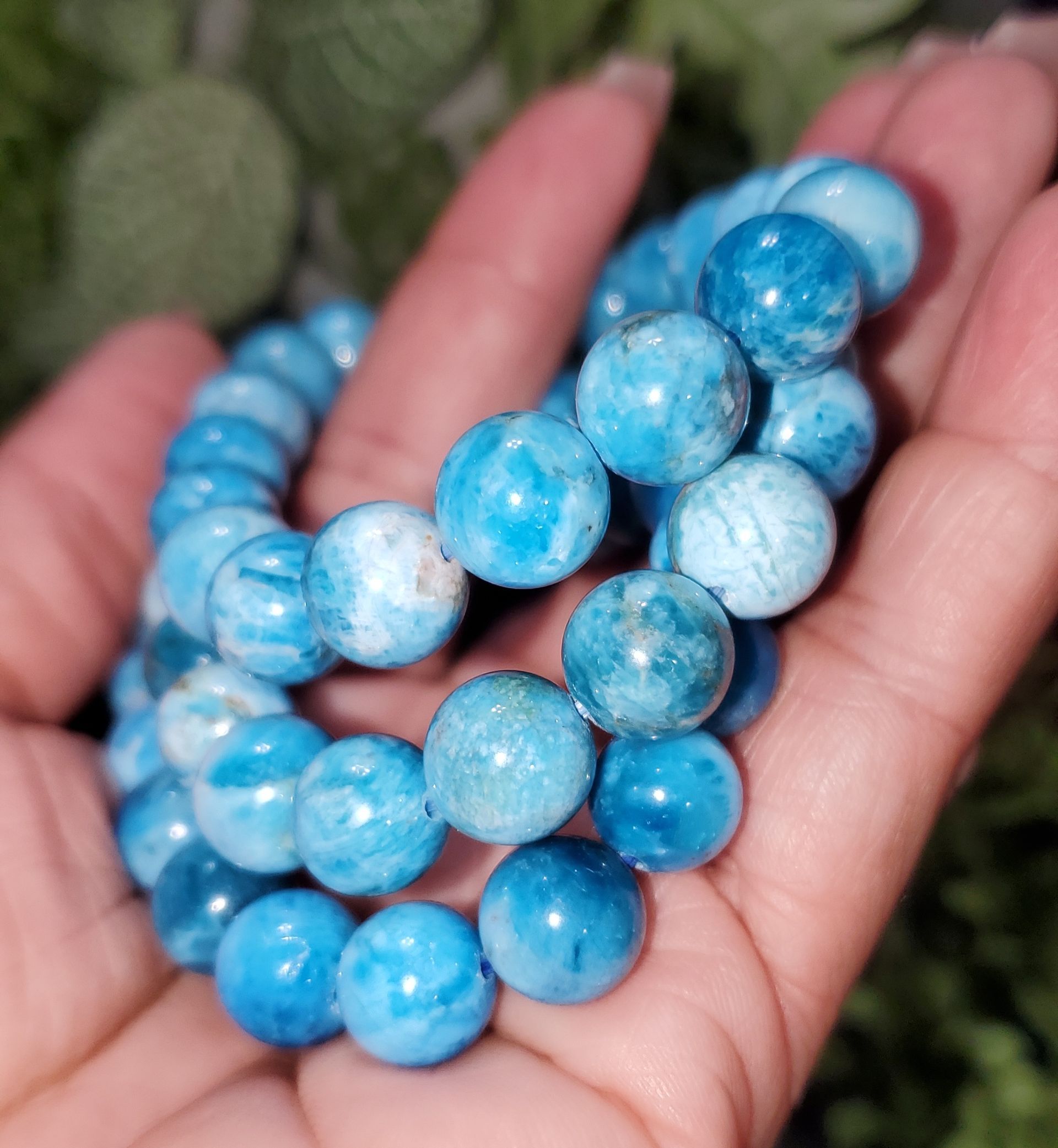 These apatite bead bracelet features smooth, polished beads in vibrant blue tones that catch the eye with their natural depth and shine. Apatite is often associated with motivation, creativity, and clear communication, making this bracelet both stylish and meaningful. Comfortable for everyday wear and easy to layer with other pieces, it’s a versatile accessory that adds a pop of color while symbolizing inspiration and personal growth. Perfect as a thoughtful gift or a unique addition to any jewelry collection.