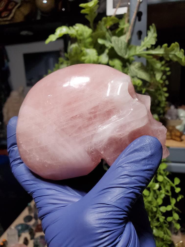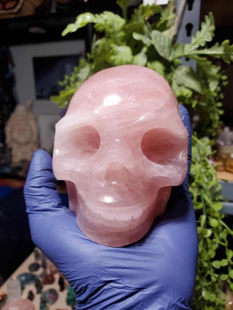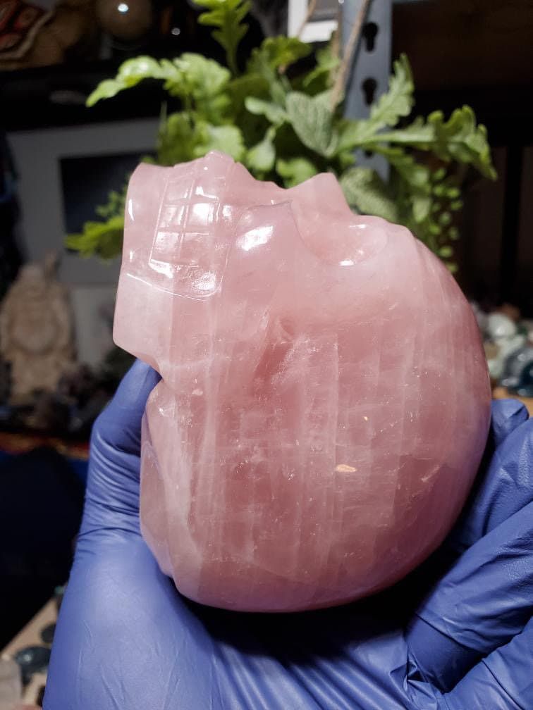 Rose quartz skull 1lb 4.2oz (1.28kg) large, beautiful Hand carved rose quartz stone skull Figurine