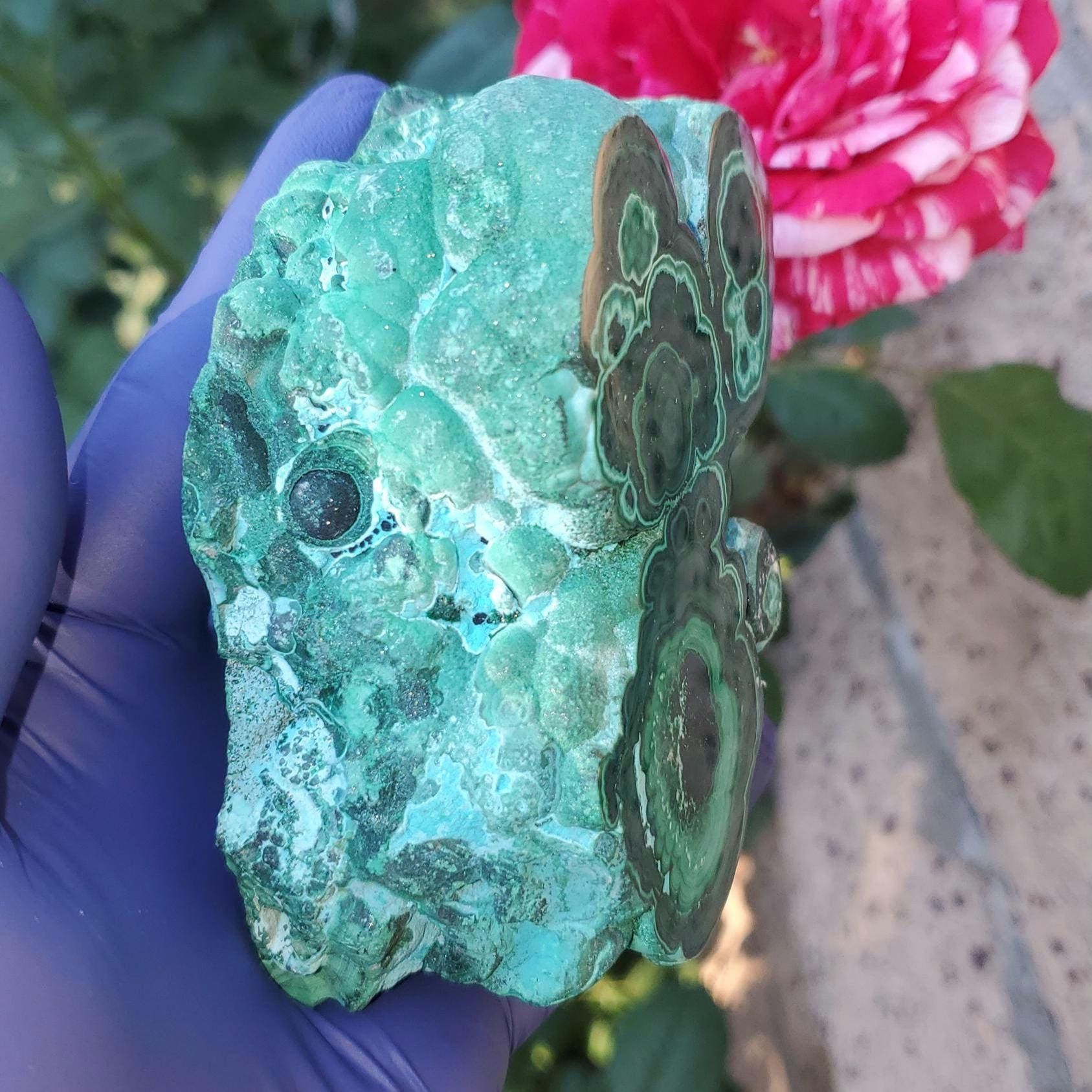 Malachite and chrysocolla are two vibrant copper-based minerals often found together in the rich copper deposits of the Democratic Republic of Congo, particularly in the Katanga region. Malachite, known for its deep green color and striking banded patterns, is a copper carbonate hydroxide mineral that forms through the oxidation of copper ores. Chrysocolla, on the other hand, displays stunning blue to turquoise hues and is a hydrous copper silicate mineral commonly found in the same environments. When malachite and chrysocolla occur together, they create captivating stones with swirling blue-green patterns, widely used in jewelry, carvings, and ornamental art pieces.