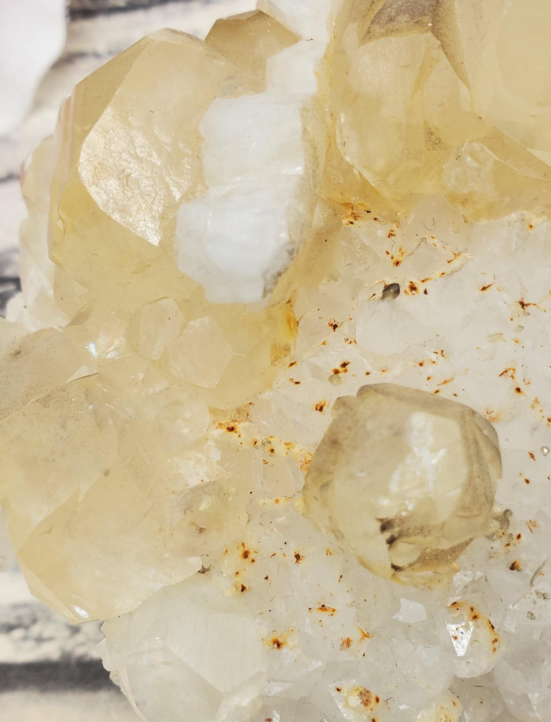 From a metaphysical perspective, Golden Calcite is known for its empowering and soothing energy—it enhances confidence, motivation, and mental clarity, while promoting a calm sense of purpose. The Quartz matrix amplifies these properties, acting as an energy magnifier and harmonizer, making this combination both visually breathtaking and energetically balanced.