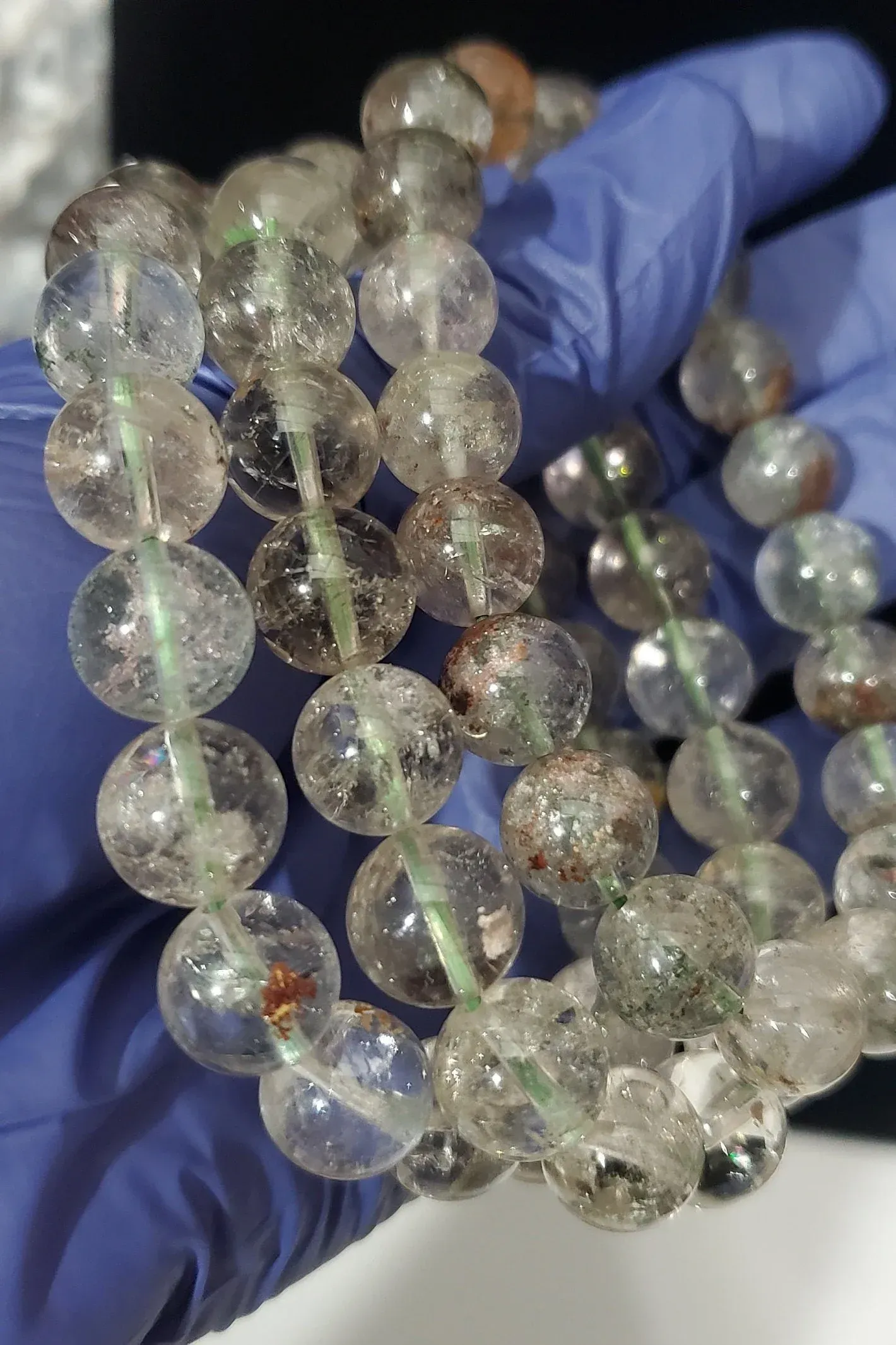 Garden quartz bead bracelets are made from round beads of garden quartz—also known as lodolite, inclusion quartz, or scenic quartz—a type of clear quartz that contains natural mineral inclusions resembling tiny underwater gardens, mossy landscapes, or miniature worlds. These inclusions can appear in earthy tones like green, red, brown, gold, white, or orange, and no two beads ever look alike, making each bracelet completely unique.