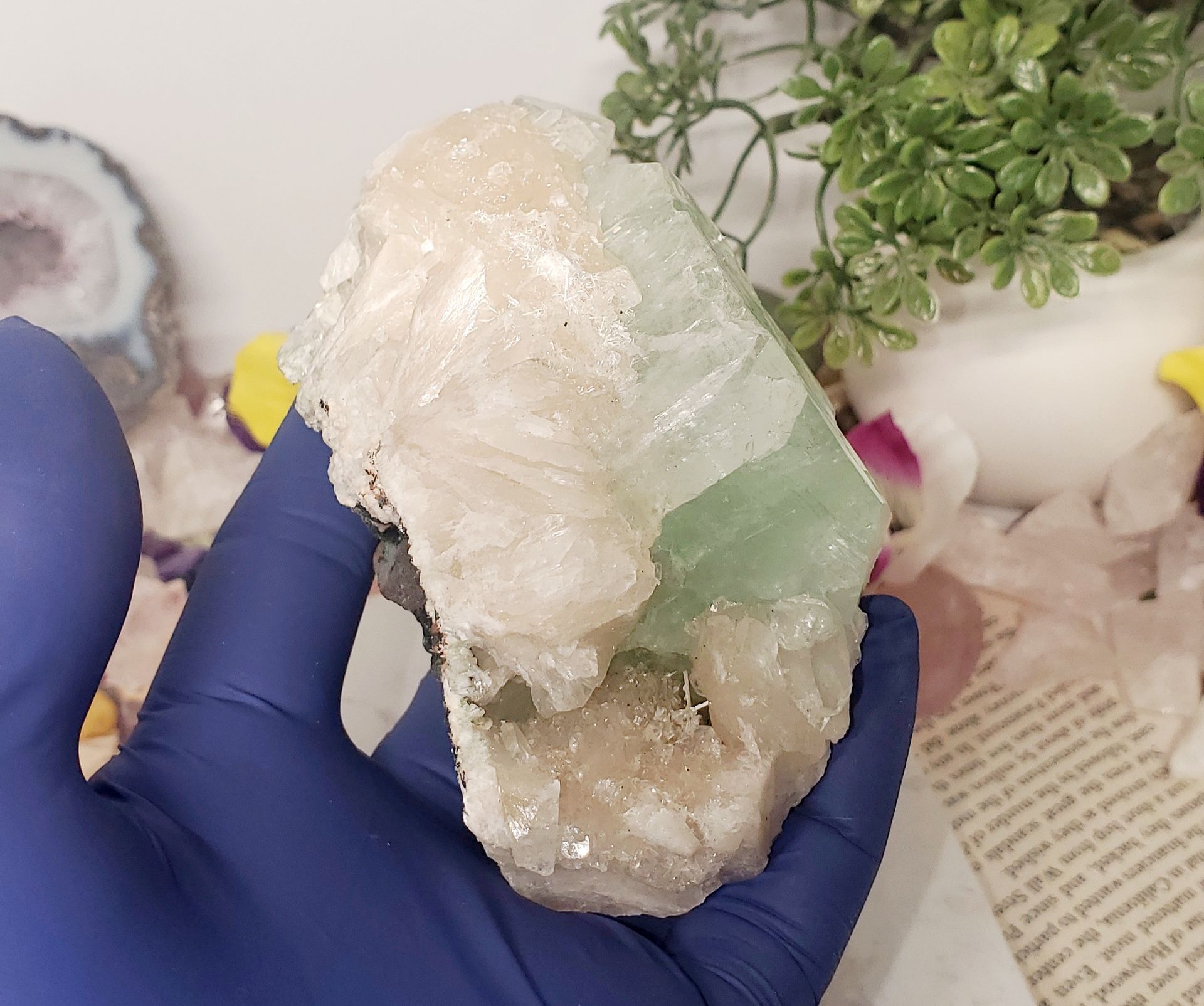 Formation and Locality: Apophyllite is commonly found in volcanic zeolite environments. Jalgaon and Ahmednagar districts of Maharashtra, India.