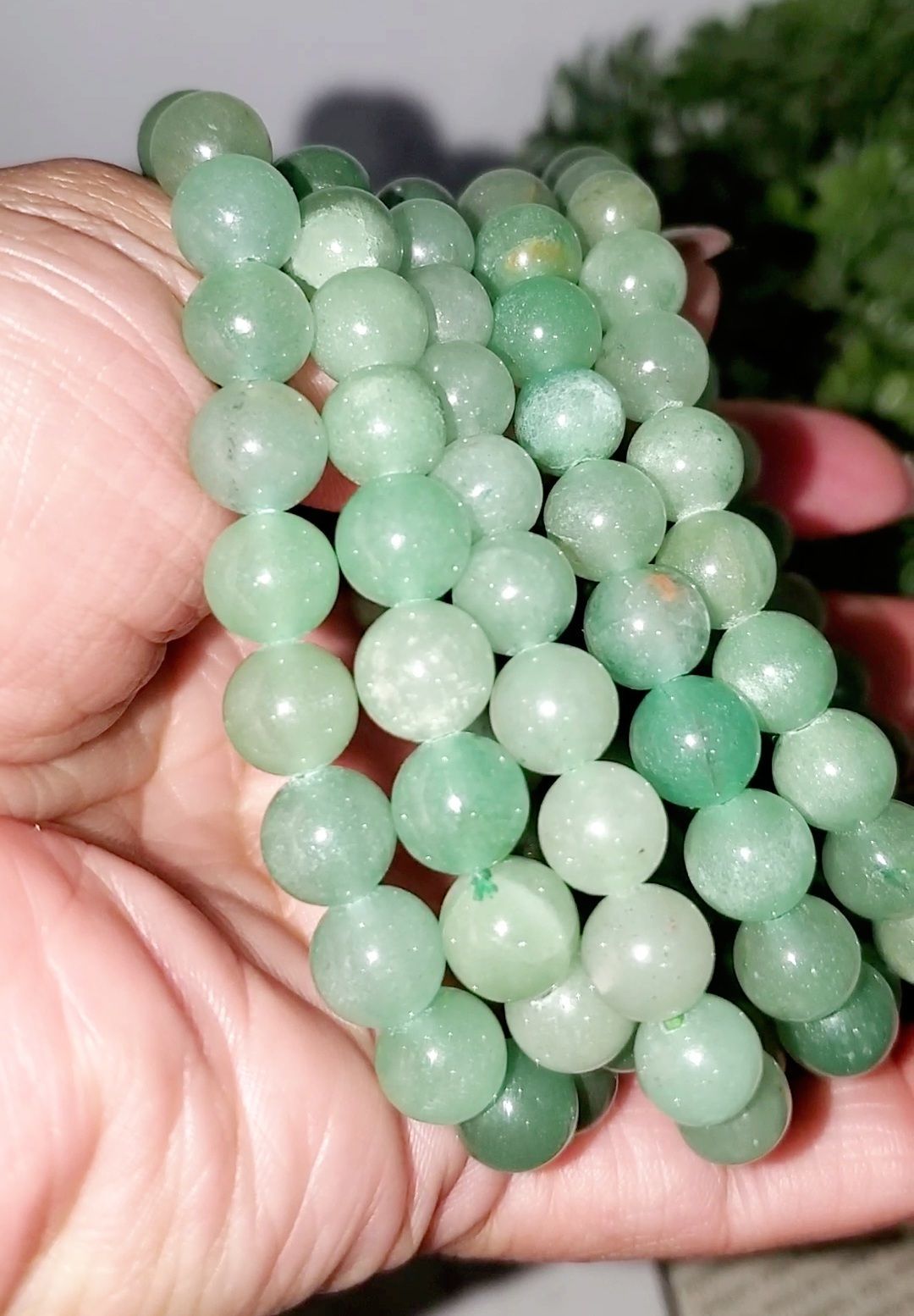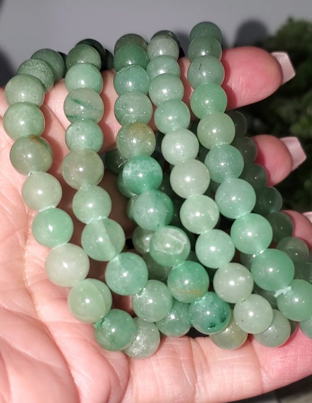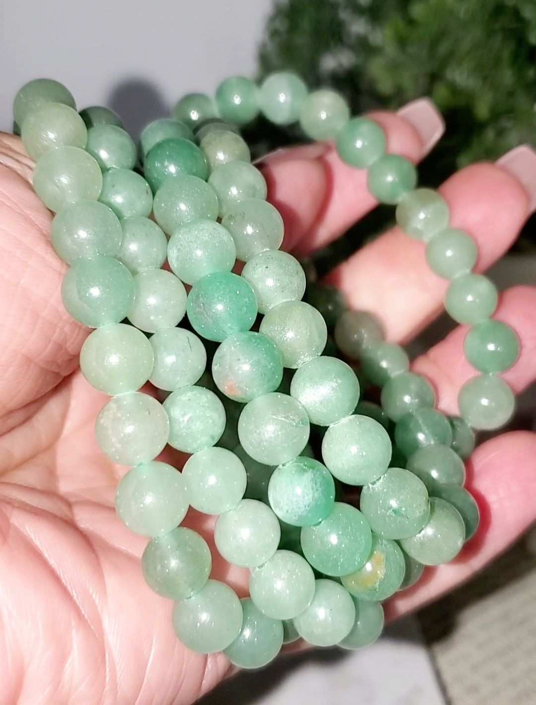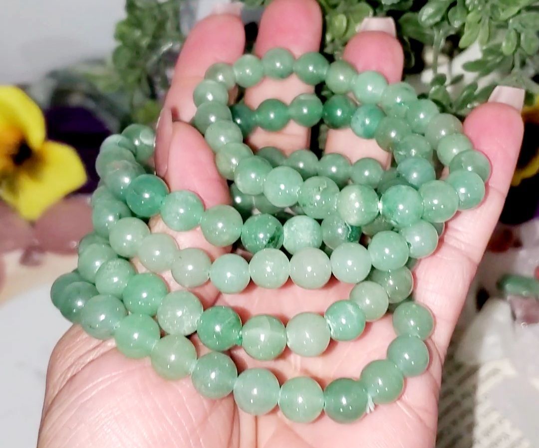 This green aventurine bead bracelet features soft, natural green tones with a gentle shimmer that gives it a fresh, calming look. Known as the “stone of opportunity” in cultural traditions, green aventurine is often associated with luck, growth, and optimism. Made with smooth, polished beads for comfortable everyday wear, this bracelet is easy to style on its own or layered with others, making it a meaningful and versatile addition to any jewelry collection.