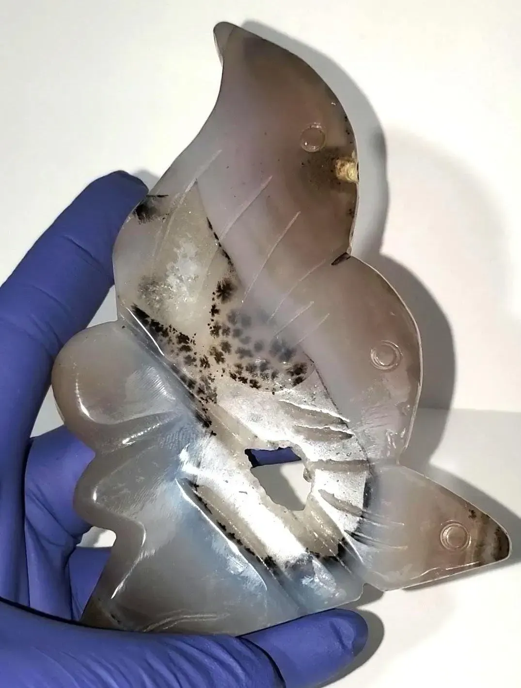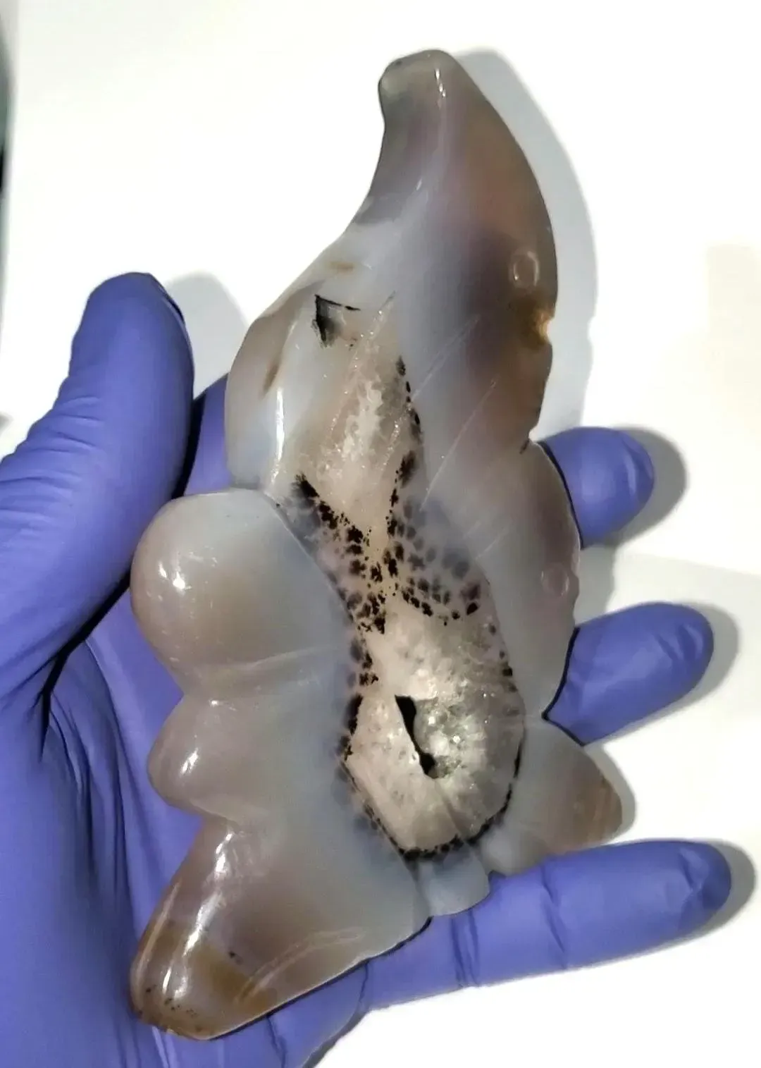 Chalcedony Agate Fairy with dendritic on with druzy 170g