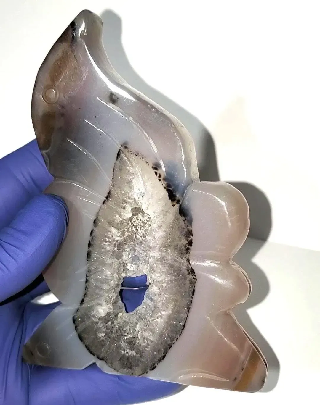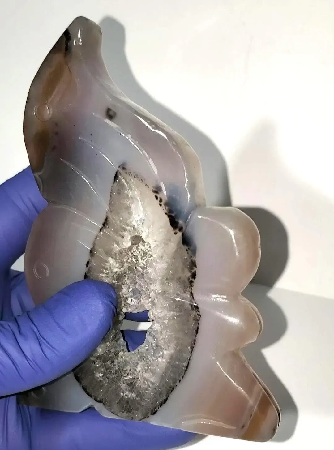 Chalcedony Agate Fairy with dendritic and prominent geode formation with druzy crystals 170g