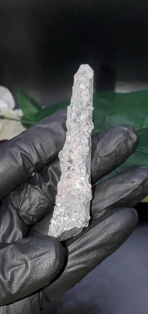 The addition of specular hematite (a sparkling, metallic form of hematite) adds dramatic contrast—tiny reflective plates or flecks of deep silver-gray shimmer against the milky to translucent quartz body. This combination of bright quartz and glittering hematite creates a powerful visual and energetic balance: quartz amplifies energy and clarity, while hematite grounds and stabilizes it.
