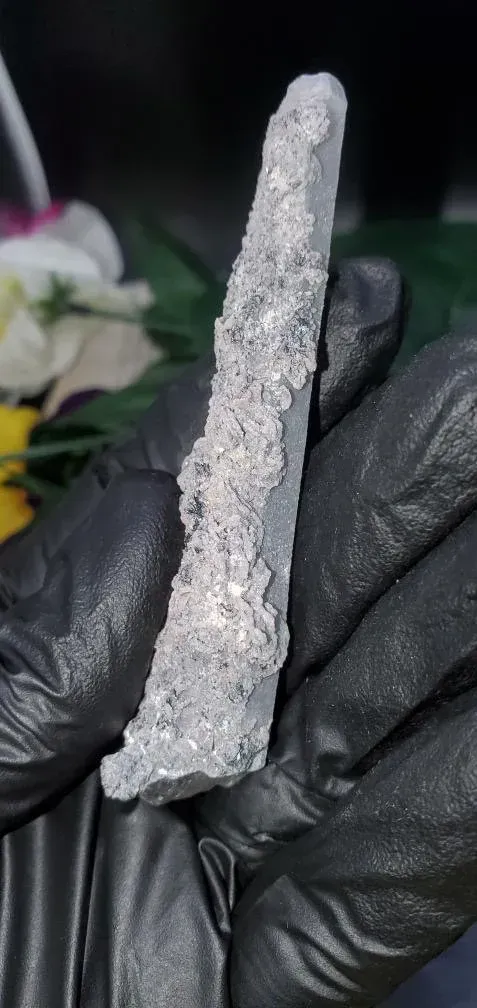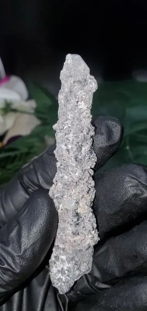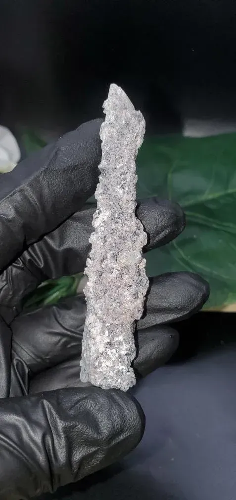This crystal features the distinctive “candle quartz” formation, where the main point is surrounded by smaller crystal growths, giving it a wax-dripped or flame-like appearance—hence the name candle quartz. The surfaces often shimmer with a soft, frosted luster that catches the light in a gentle, glowing way, as though the crystal itself were illuminated from within.