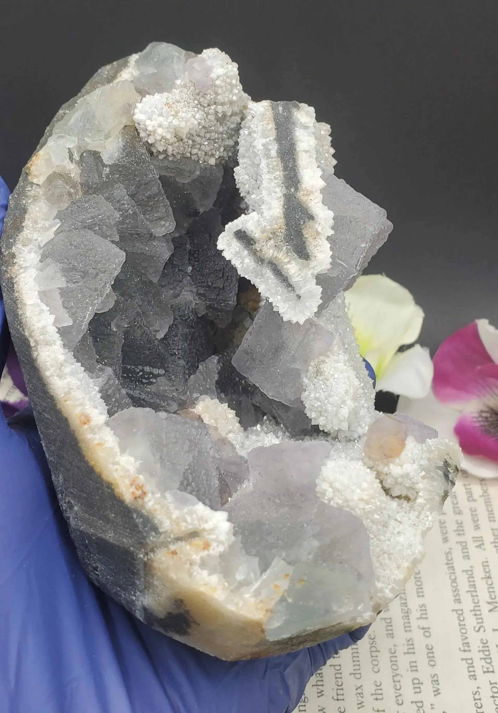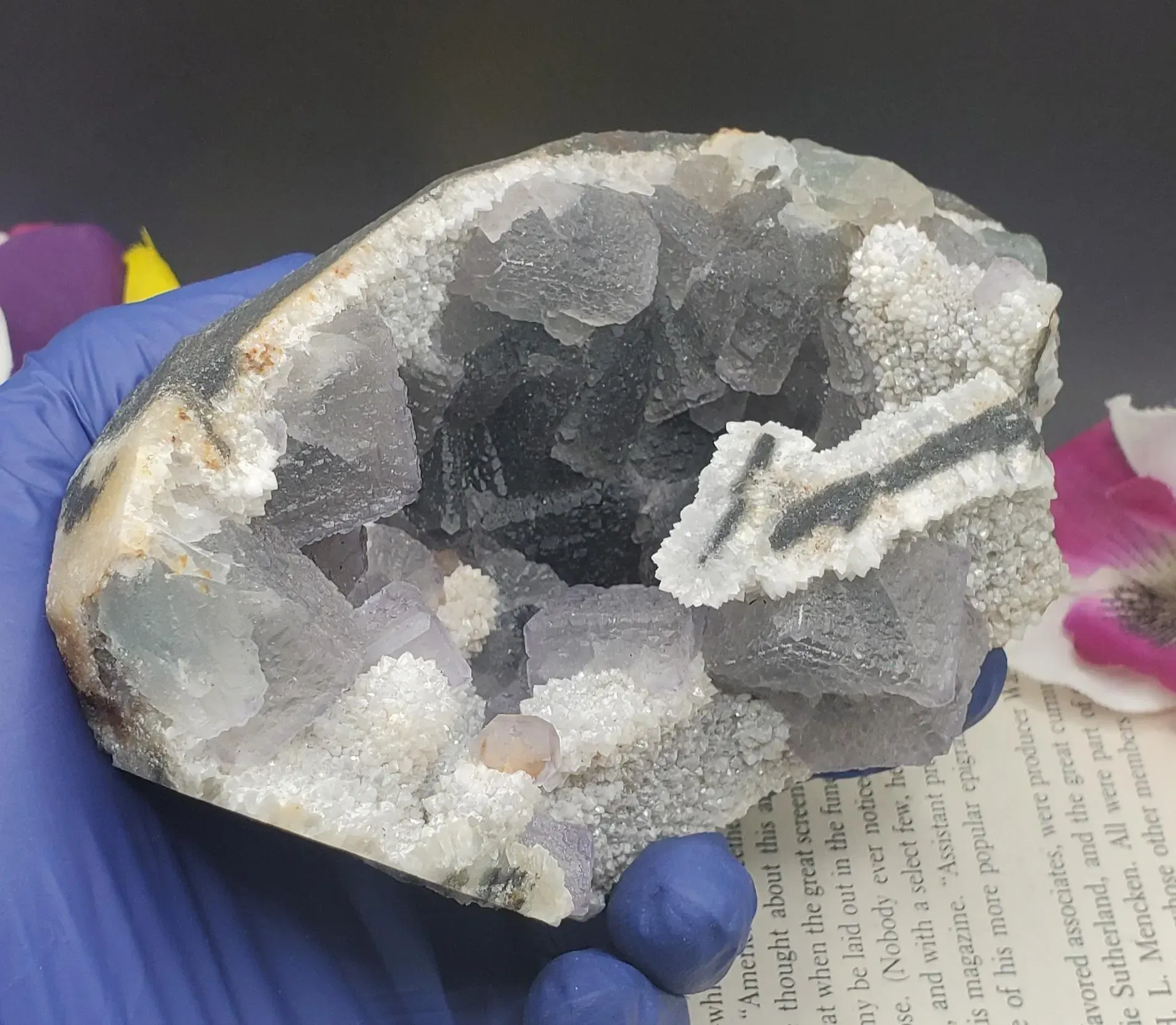 A Morandi fluorite mineral cluster from Inner Mongolia is a naturally occurring grouping of fluorite crystals known for its soft colors' gentle greens, smoky grays, lavenders, and subtle pinks. These clusters consist of multiple intergrown crystals on a shared matrix, often creating intricate, layered formations that highlight the stone’s natural beauty. Many specimens from this region are UV-reactive, glowing vibrant blues, purples, or greens under ultraviolet light, which contrasts strikingly with their understated appearance in natural daylight. Collectors prize these clusters for their unique combination of elegance, optical intrigue, and display appeal, as each piece is one-of-a-kind and showcases both the geological complexity and the dynamic visual effects of fluorite.