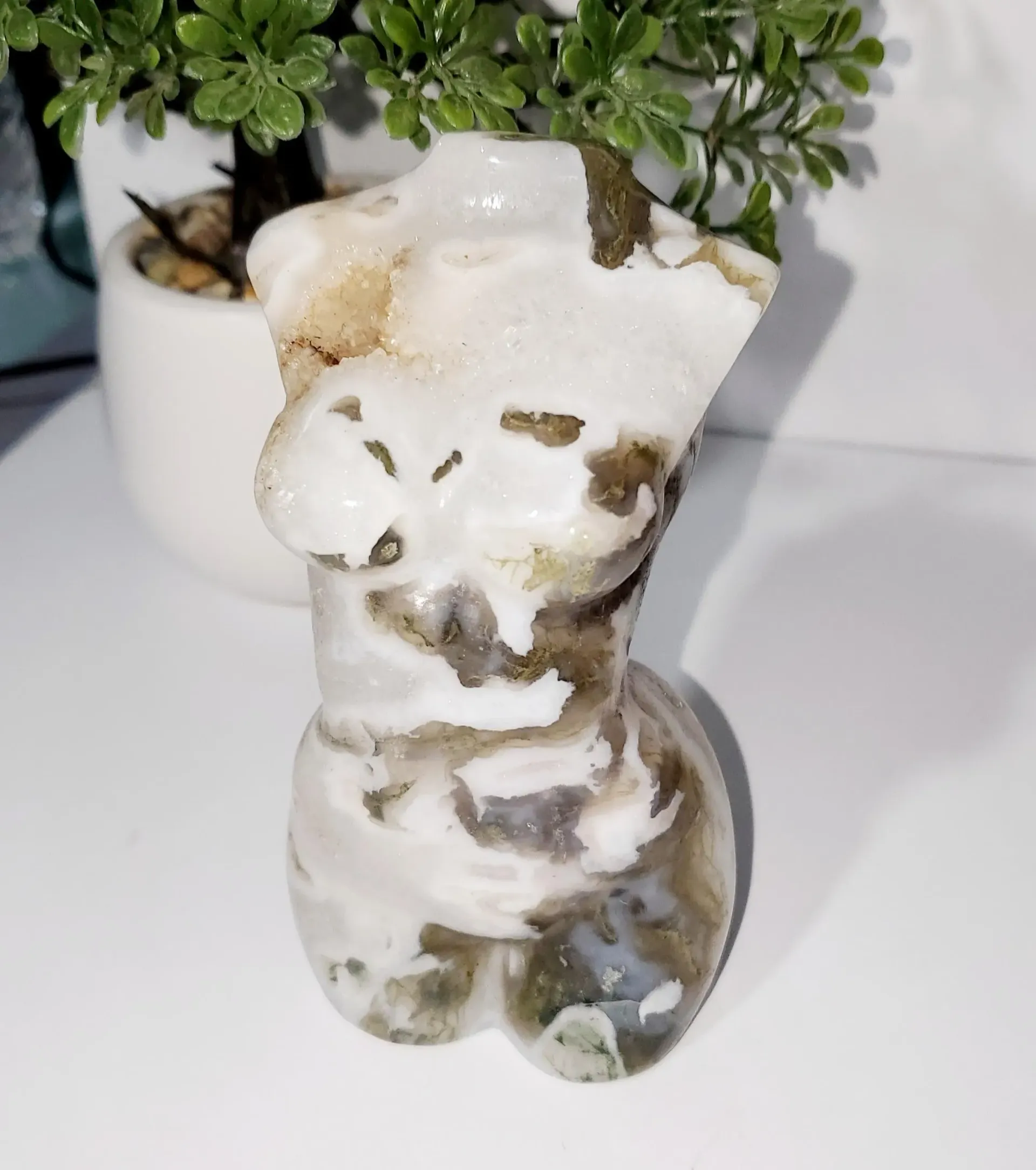Moss Agate Crystal Goddess, Crystal Female Body 554g