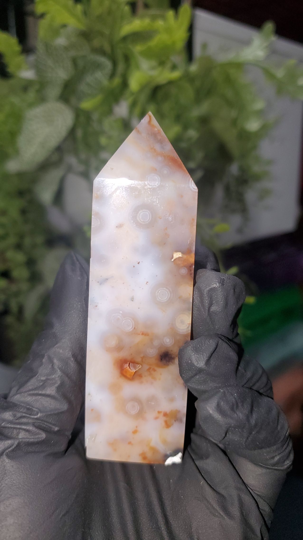 Orbicular Jasper—often called Ocean Jasper—is a rare and distinctive form of jasper found mainly in Madagascar. It is known for its circular, orb-like patterns that evoke ocean waves or miniature galaxies. The stone appears in a wide range of colors, including green, brown, blue, yellow, gray, white, pink, and red. Valued for its calming energy, Orbicular Jasper is believed to support emotional healing by helping release stored emotions and encouraging emotional balance and clarity.