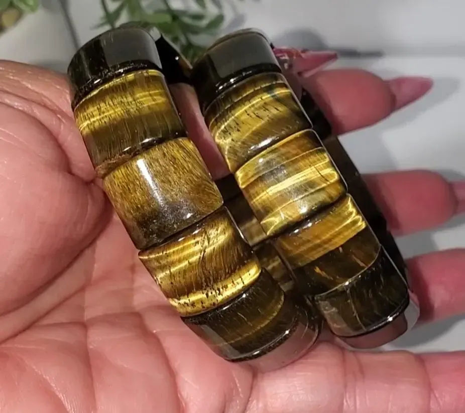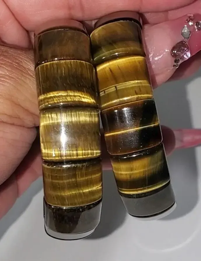 Golden-brown tiger eye is a variety of quartz renowned for its warm, honey-to-brown hues and silky, reflective bands that create the signature “cat’s-eye” or chatoyant effect. Formed when fibrous crocidolite is gradually replaced by quartz, the stone retains its fibrous structure, which causes light to shimmer across its surface. Valued both for its aesthetic appeal and metaphysical properties, golden tiger eye is often used in jewelry such as beads, bracelets, and pendants, and is believed to promote grounding, protection, confidence, and clarity. Its rich, earthy tones and luminous, dynamic surface make it a versatile gemstone for everyday wear and decorative displays, combining natural beauty with symbolic energy.