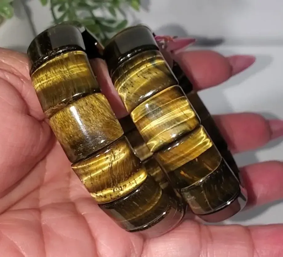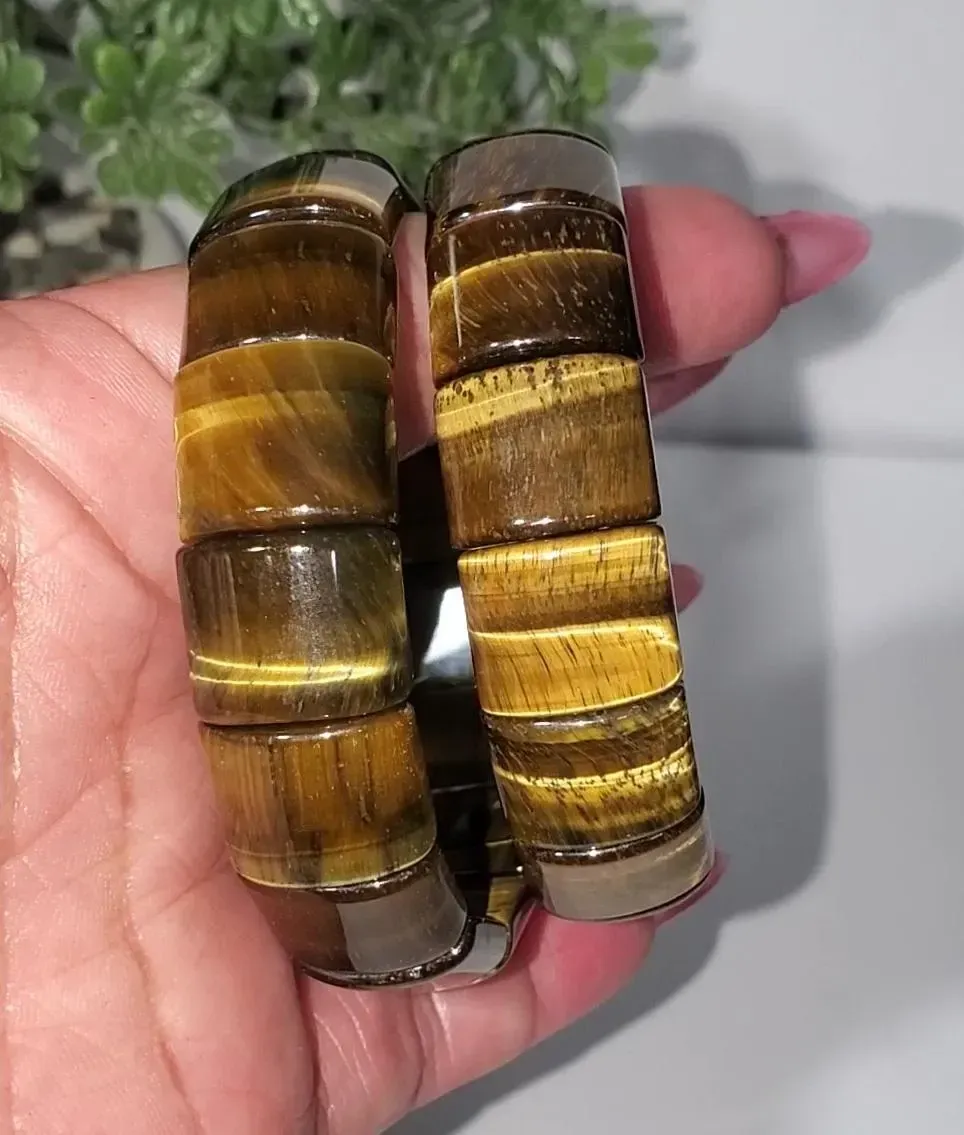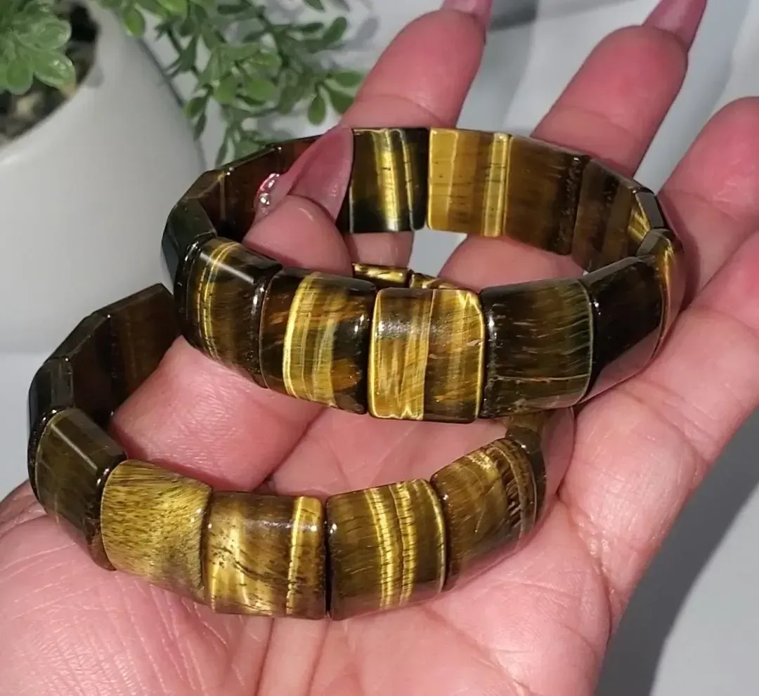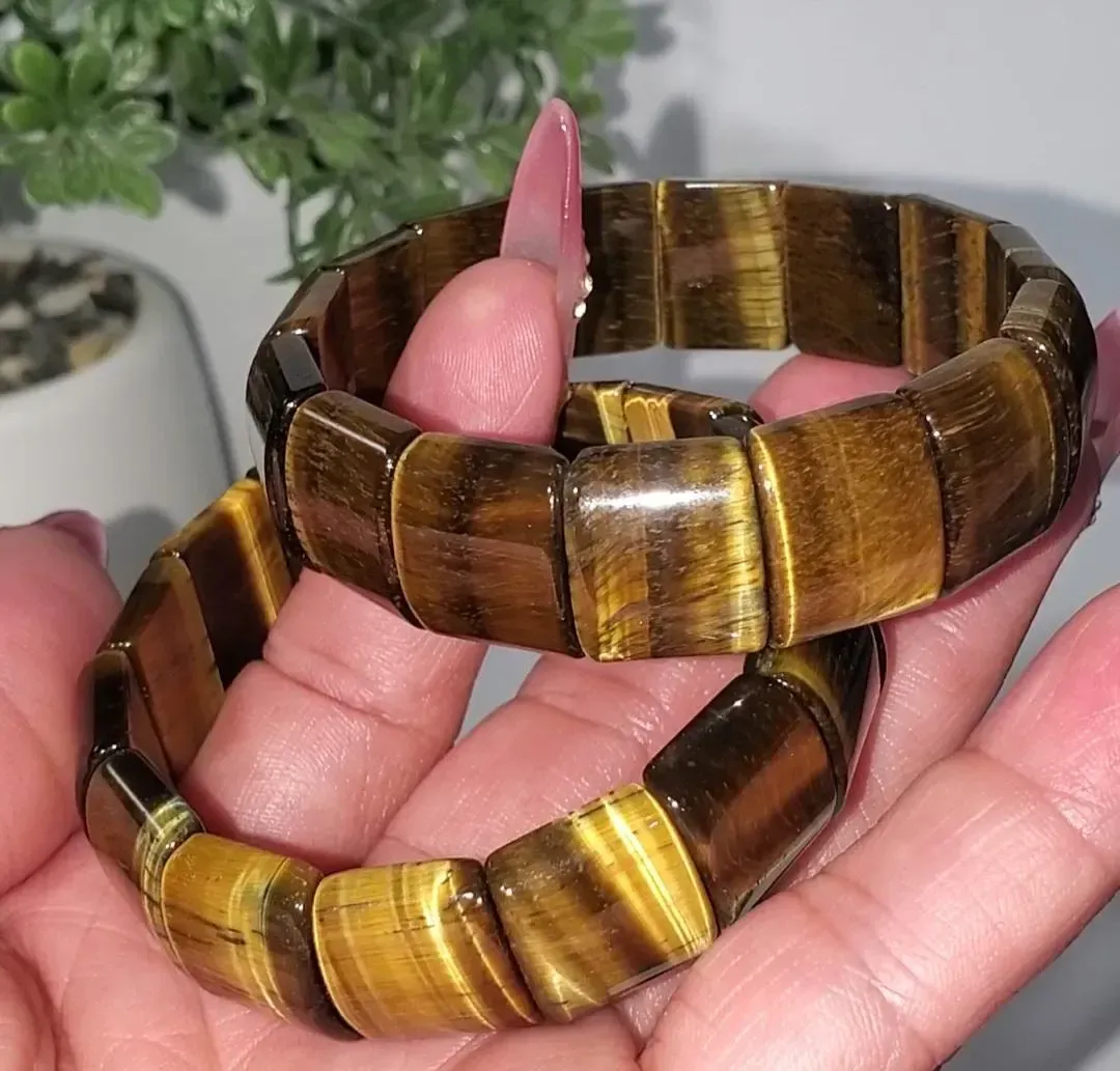 Tiger's Eye 13.6mm square Beads Bracelet 5.5" inner wrist diameter 1pc