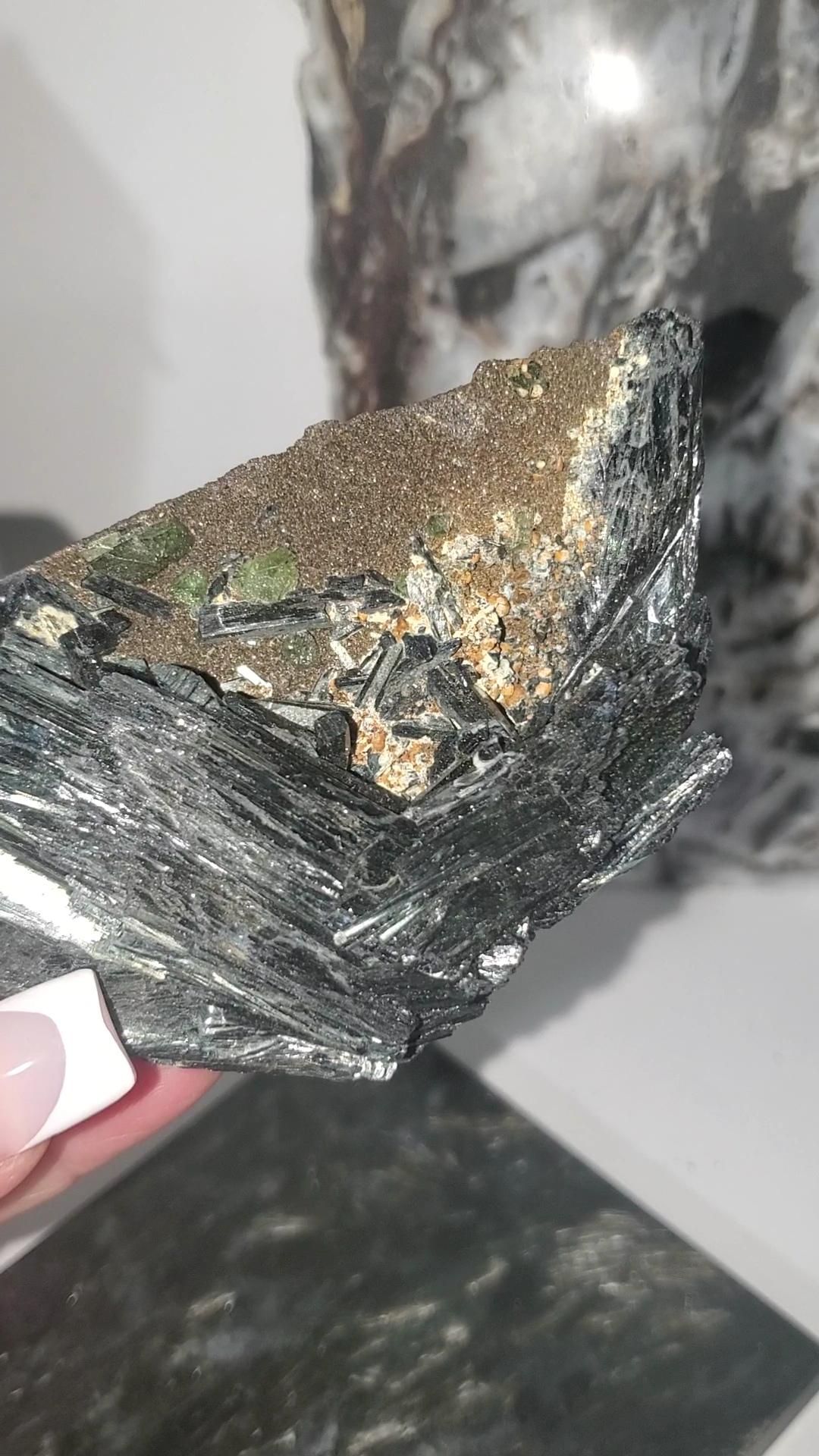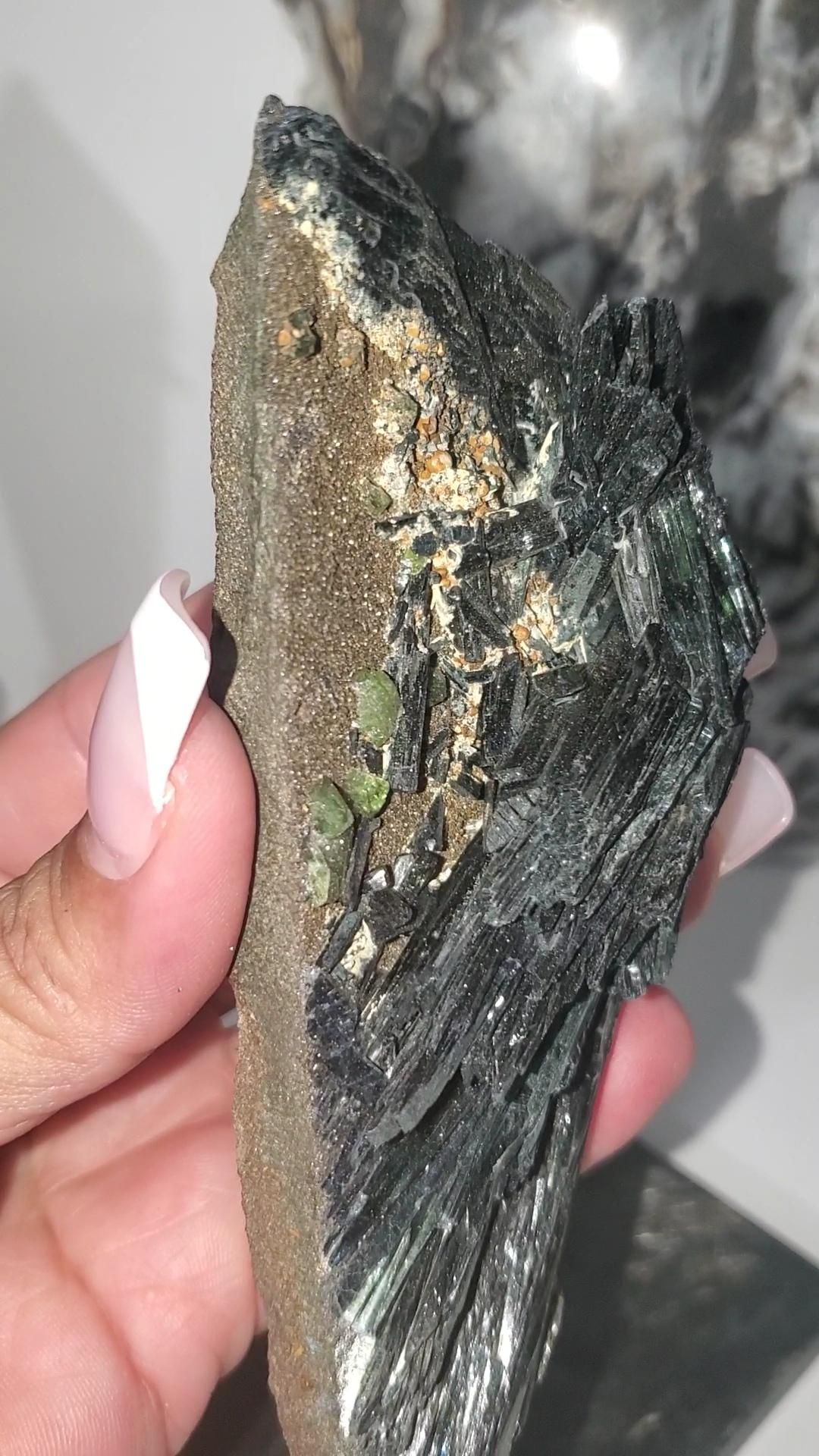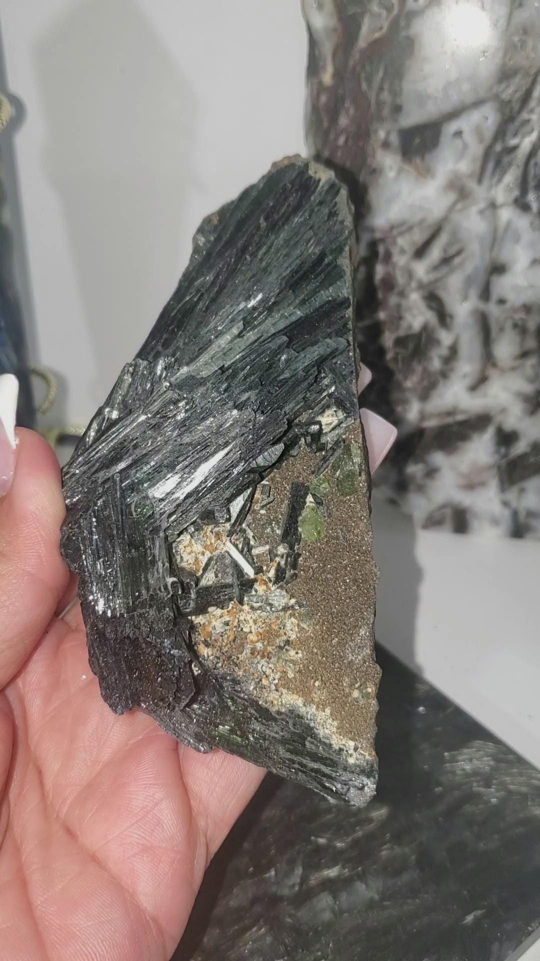 Vivianite is a hydrated iron phosphate mineral that often forms inside fossil shells, bones, or organic-rich clays. When freshly mined, it’s usually colorless to pale green — but when exposed to light and air, it oxidizes and deepens into striking shades of blue, green, or deep indigo. This natural transformation is part of what makes Vivianite so intriguing